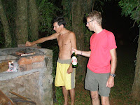 Het stadje Iguazu stikt van de toeristen en het is niet makkelijk om nog een hostal te vinden met airco en zwembad. Het is pokkeheet en na de twee kilometer van het busstation naar de hostal moeten we dringend onder de douche. Een koude douche graag! Die dag genieten we van een boekje aan het zwembad.
